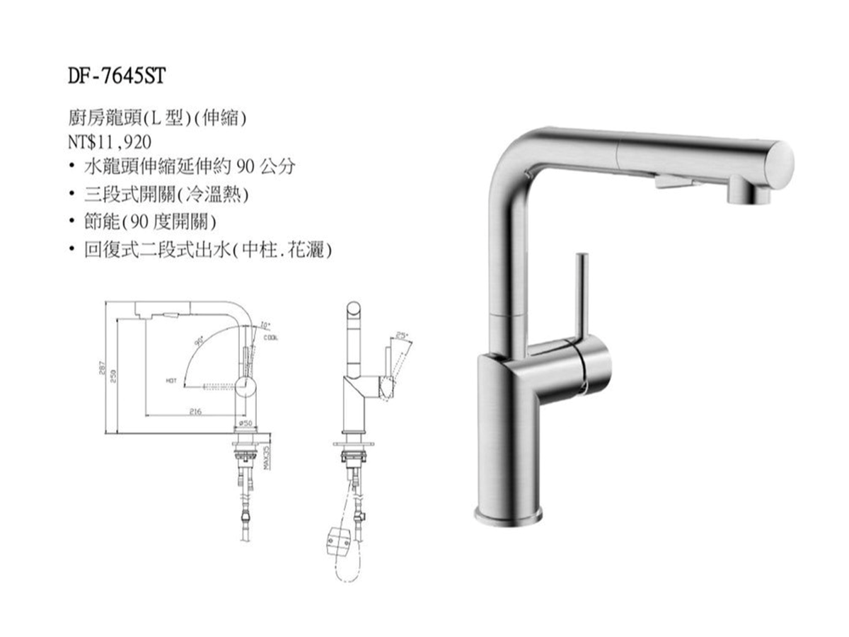 DF-7645ST伸縮龍頭(冷、熱 ) 中柱、花灑